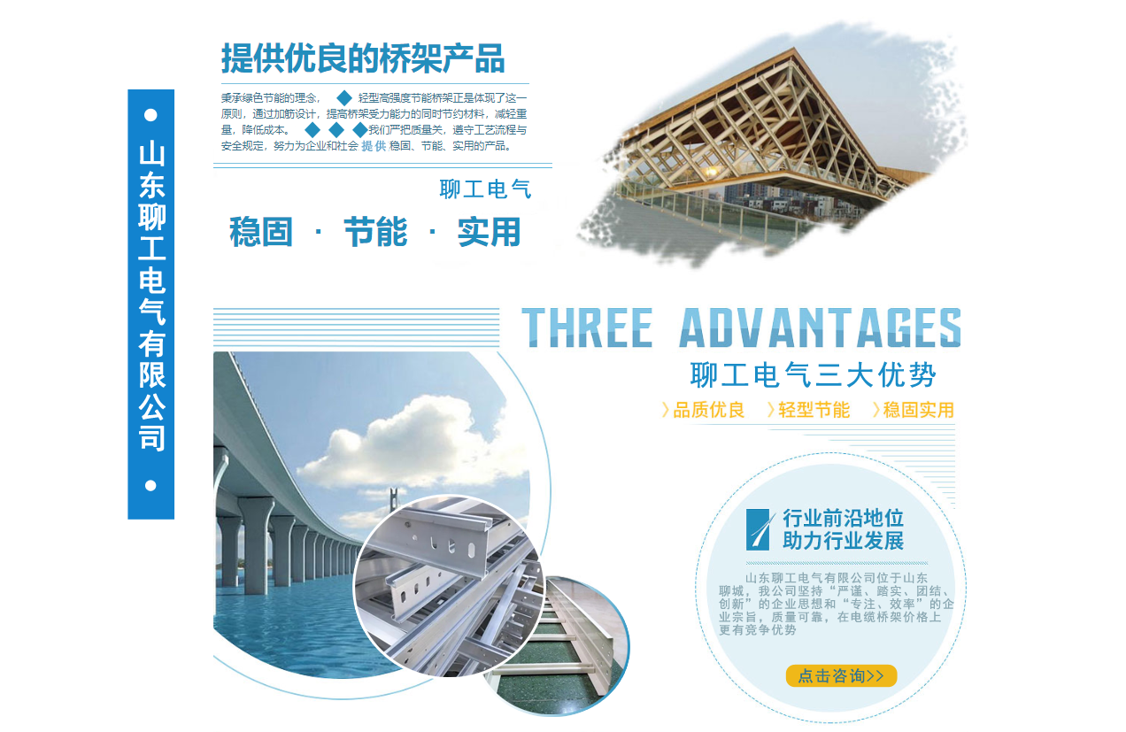 山東聊工電氣有限公司位于山東聊城,是一家銷售各類橋架的公司,公司主營(yíng)鍍鋅防火噴塑橋架,鍍鋅防火電纜橋架 ,不銹鋼電纜橋架,熱浸鋅電纜橋架,鋁合金電纜橋架,熱鍍鋅電纜橋架,梯式電纜橋架等我公司堅(jiān)持“嚴(yán)謹(jǐn)、踏實(shí)、團(tuán)結(jié)、創(chuàng)新”的企業(yè)思想和“專注、效率”的企業(yè)宗旨,質(zhì)量可靠,在電纜橋架價(jià)格上更有競(jìng)爭(zhēng)優(yōu)勢(shì)。公司追求品質(zhì),配有研發(fā)人員,進(jìn)行產(chǎn)品的改革和創(chuàng)新,服務(wù)先進(jìn)走出了一條富有企業(yè)特色的可持續(xù)化發(fā)展之路! 我公司鄭重向你承諾:保證最好的質(zhì)量,以低的價(jià)格,完善的售后服務(wù),來答謝新老客戶。可提前電話聯(lián)系。...